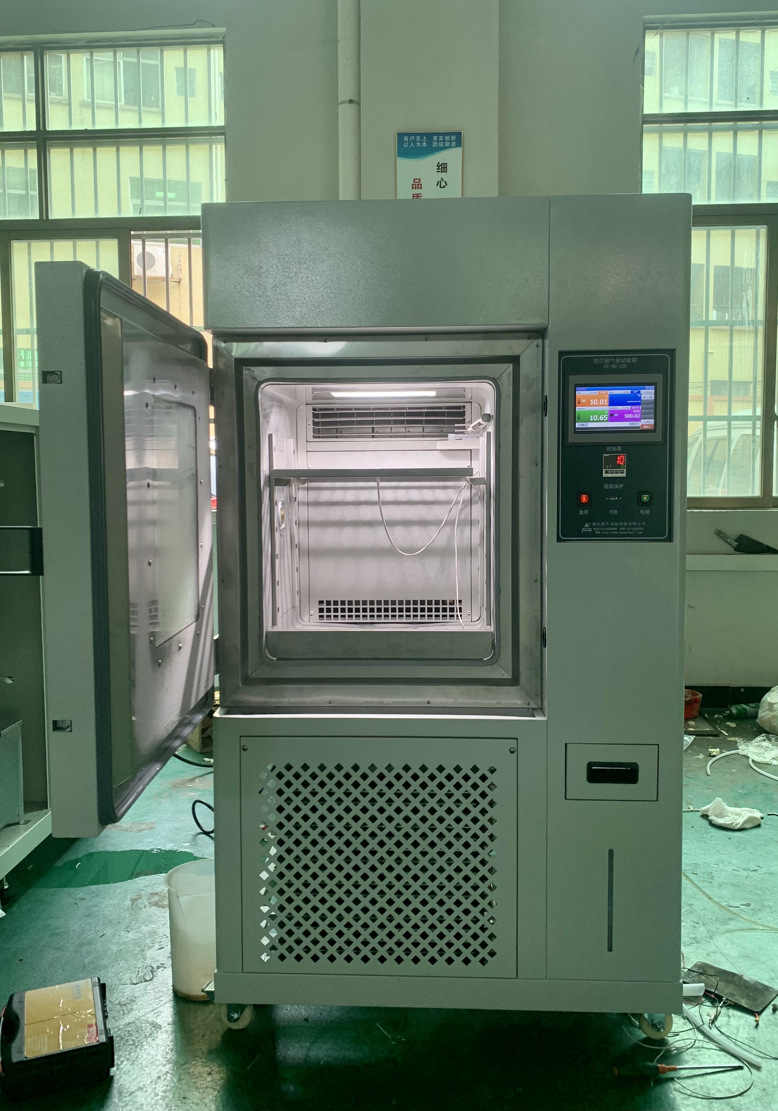 通過材料試樣暴露在氙弧燈的光照及熱輻射下進行老化試驗.來評價在高溫光源作用下某些材料的耐光、耐候性能.主要用于汽車、涂料、橡膠、塑膠、顏料、粘合劑、織物等。?